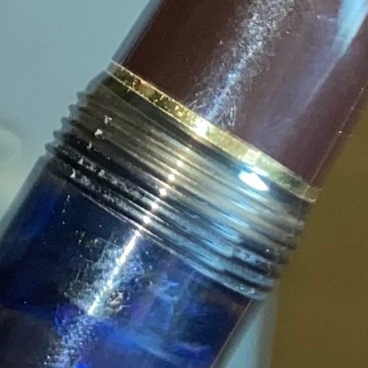 Hello to all! 🙂 I have two Pilot Custom 823s, and I noticed today that there is something like ink buildup in spots inside the pen barrel, on the metal rod. Due to work I am using these pens infrequently, like once every two-three weeks, and I leave them inked inside the Pilot box they come in. I have both around a year, each inked with a single Pilot Iroshizuku ink, and thus I haven't clean them so far - I know that what I am describing isn't the best strategy, but this is the situation now. Both pens write normally. I am attaching pictures of the Amber 823, inked with Ama-Iro. Can somebody confirm that this is indeed ink buildup and not something more alarming (like mold, for example)? 😕 In the Smoke 823, there was a similar spot, larger in size, and while pulling the rod out (like preparing for filling the pen) it got much smaller, probably due to contact with the sealed end of the pen's body. If these are indeed ink buildups, I suspect that I should clean both pens to remove them? Thanks for any information and help!