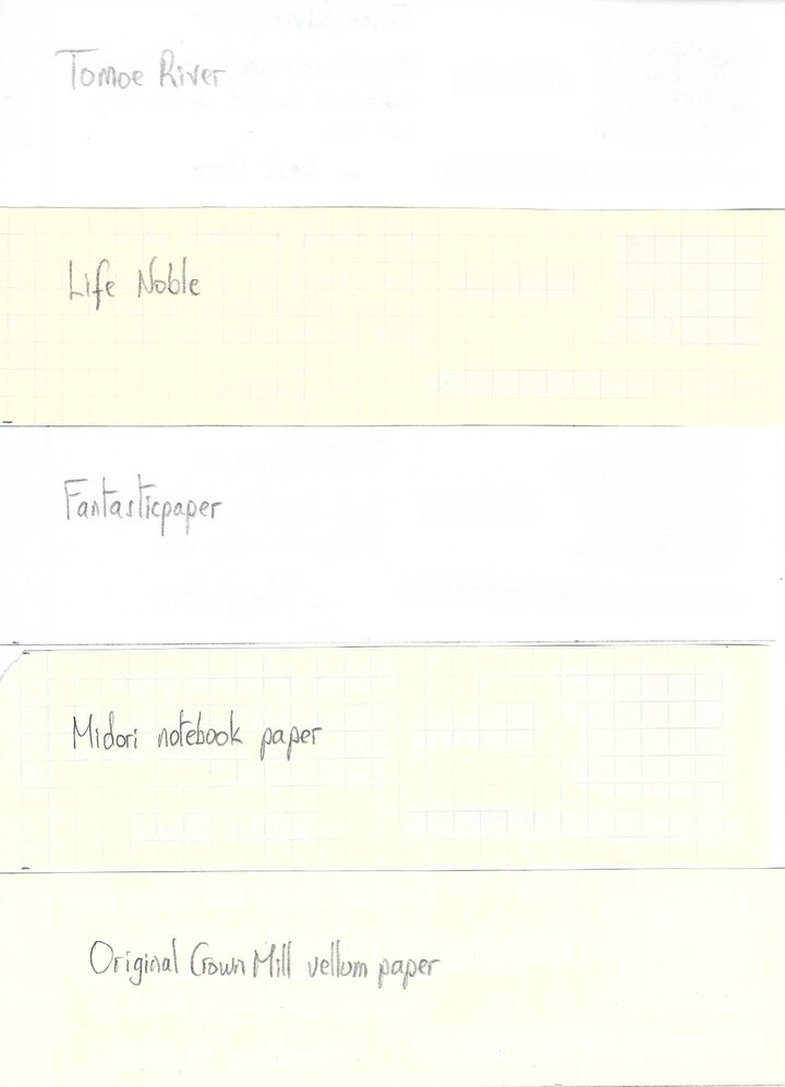 As well documented in Visvamitra's epic review of all the Sailor Kobe inks, there are many interesting inks in this line. Sumiyoshi brown is one. Many, if not most, browns on the market today have a strong red component, and there are very few cool browns available. This ink is one. I find it has a very vintage vibe to it. The origin of this ink could be in the Japanese brush painting tradition, but perhaps someone with better knowledge of this could confirm that. This ink is not a match for the classic Parker Penman Mocha, but it leans much more in that direction than many other brown inks available today. I like this ink quite a bit. The change from the usual fare is welcome, and the handling is classic Sailor. The ink is also almost totally waterproof. The usual papers were tested: Mohawk via Linen=MvL, Tomoe River=TR, Hij=Hammermill 28 lb inkjet. The images were taken with an old Canon Powershot P50 indoors in natural light or in the shade. While some ink is washed away, the vast majority stays behind. Quite impressive.