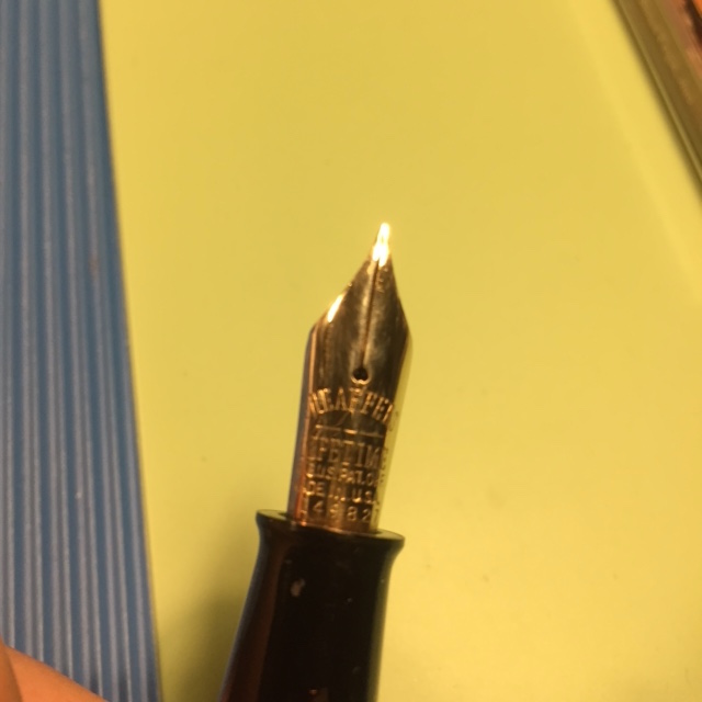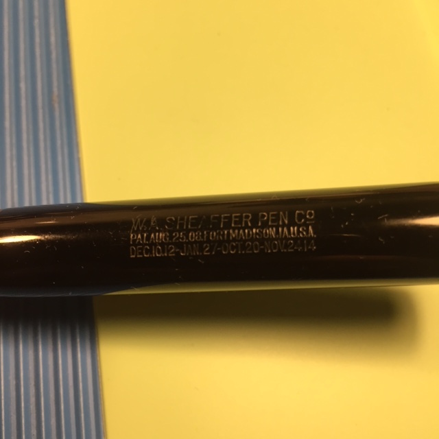 Hello, fellow Sheaffer'S lovers, I recently acquired and worked a bit on a flat-top that is truly lovely (and now writes nicely too ), but I'm having some thoughts about dating it (e.g. "help!") I've attached some relevant photos... the clip is the round ball humped variety, and that with the barrel imprint suggests mid-to-late 1920s, but the feed on the nib is the full-cut comb type, and that says to me 1939 or so. Perhaps the nib is a replacement? I would love to hear some thoughts and opinings. Matt