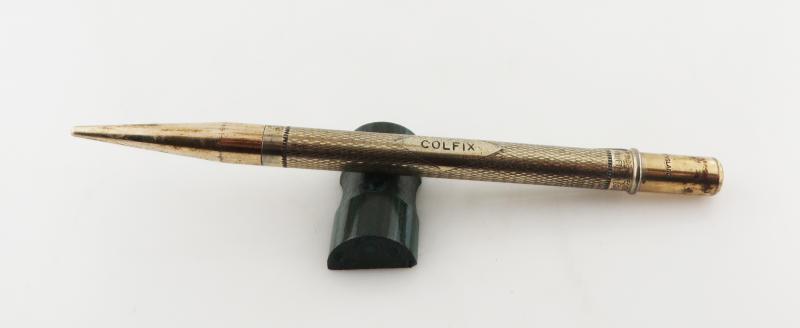 On The Cap: Rolled Gold Made In England On The Barrel Above Clip Band: Whetham London Is Whetham The name of the company that made the pencil? In the cartouche is COLFIX I believe that is an advertiser Any help with identification appreciated