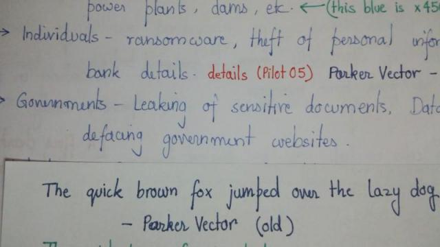 Hello forum, I bought a Jinhao x450 and I had a query regarding the nib. I thought the pen comes with a Medium nib, but it looks to be much finer. Can you confirm from the images ? Is there something wrong with the nib/flow ? You can see it breaks in the "F" and bottom of "G"s. (please zoom the images while examining) Also there is hardly a "hairline" gap between the tines. I cant even see the light through the gap. I love writing with the M nib of my old Parker Vector. The color is deep dark and uniform. But with x450, the lines are almost scratchy and non uniform. I tried to increase the gap by pushing the nib against a wooden board. Its too hard and nothing happens even after repeated efforts. Any suggestions to make the writing medium(ish) ? Can any x450 owners confirm if this is how thin the pen writes ? Also, is it normal for a fountain pen to make scratching noises ? My old parkers make a lot of noise, though their scratchiness is within the limits of "feedback". My new x450 too makes a bit of scratching noise, though it is a little quieter. Ink - Daytone Blue (500ml bottle pack) Thank You (PS: this is my first post on the forum, though I have referred to the FPN many times in the past. I am a newbie to the technicalities of FP, but I have been constantly using them since 2002, throughout my school and college times.)