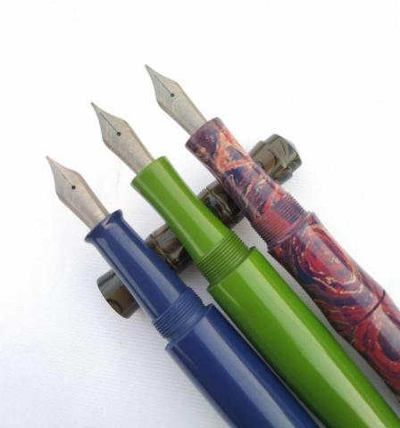 Dear fellow FP users Ranga Handmade Pens wishes you Fantastic New Year 2019 We are introducing Model 9B and Giant Model 9B in beautiful Ebonites. Few more Solid colour Ebonites are available this time. The specialty of this Group Buy is 1. Lot of Ebonite colours (Beautiful 39 colours) and unlimited Nib Choices (Bock/Jowo/Schmidt/Indian nib) . 1.Model 9B torpedo shape pen in classic style. Capped Length:App 150mm .,Cap Dia -16mm, Barrel Dia -16mm. Section is hour glass section. All our pens are completely handmade. 2.Giant Model 9B is bigger version of Model 9B. Capped Length : App 175mm . Cap Dia -17mm or 18.75mm dia based on availability, Barrel dia-17mm or 18.75mm dia based on availability. Section is hour glass section. All our pens are completely handmade. This Group Buy is Valid till 20-Feb-19 In order to participate in the group buy just fill the Google Form (Link Below) and Reply in the thread with "Form Submitted or just repost the choices in thread https://docs.google.com/forms/d/e/1FAIpQLSdrijq9CJl3qf7ivO6MLBzHZ1U6HQru9YRgs7b2ZlYASy4saQ/viewform Available Colours are as follows: A. SpecialRegular Ebonite Colours (SE Series) Solid Forest Green (S1)Forest Green - Black Ripple(S2)Forest Green - Honey Ripple(S3)Forest Green - Khaki Ripple(S4)Forest Green - Mustard Yellow Ripple(S5)Forest Green - Teal Blue Ripple(S6)Teal Blue - Black Ripple(S7)Teal Blue - Khaki Ripple(S8)Mustard Yellow - Black Ripple(S9)Rose Red - Black Ripple(S12)Rose Red - Mauve Ripple(S13)Rose Red - Forest Green Ripple(S15)Rose Red - Mustard Yellow Ripple(S17)Brick Red - Khaki Ripple(S18)Brick Red - Black Ripple(S19)Teal Blue - Orange Ripple(S20)Solid Crimson Red( S22)Solid Olive Green (S23)Solid Golden Brown (S24)Green/ Blue Ripple (S25)Solid Chocolate Brown (S26)Solid Sacramento Green (S27) B. Regular Colours (RE Series) Brown Ripple (R1)Green Ripple(R2) Olive Ripple (R3)Solid Black(R4)Mottled Brown(R5)Mottled Green(R6)C. Premium Ebonite Colours (PE Series) Solid Blue(P1)Black Yellow Swirl (P2)Blue Pink Swirl(P3)Solid Pale Green(P4)Blue White Swirl (P5)Green Yellow Swirl (P7)Solid Pink(P8)Blue Green Orange Swirl(P9)Green/Pale Pink(P13)Blue/ Pink/Pale Yellow Swirl (P14)Prices are as follows: RANGA Model 9B (ED Version)REGULAR or SPECIAL EBONITE: US $35 (Regular Price : 45$)PREMIUM EBONITE: US $49 (Regular Price : 60$)RANGA Model 9B (CC Mechanism)REGULAR or SPECIAL EBONITE: US $66 (Regular Price : 83$)PREMIUM EBONITE: US $79 (Regular Price : 98$)RANGA Giant Model 9B (ED Version)REGULAR or SPECIAL EBONITE: US $42 (Regular Price : 55$)PREMIUM EBONITE: US $58 (Regular Price : 72$)RANGA Giant Model 9B (CC Mechanism) REGULAR or SPECIAL EBONITE: US $70 (Regular Price :93$) PREMIUM EBONITE: US $88 (Regular Price : 110$) 5.Finish - Polished or Matte (Bakul) 6.Clip Option - 1.Model 9B: Clip-less or Gold Clip or Silver Clip 2. Model Giant 9B : Only Clipless 7. Nib Option: For Eyedropper Kanwrite 35 mm Fine Nib - Gold Tone or Chrome Tone or Dual ToneKanwrite 35 mm Medium Nib - Gold Tone or Chrome Tone or Dual ToneKanwrite 35 mm Broad Nib - Gold Tone or Chrome Tone or Dual ToneKanwrite Nib 35 mm Flex - Chrome Tone 8. Nib Option: For C/C mechanism (with Schmidt K5 Converter) #6 Nib Options (included in price)Bock Medium Nib- Chrome Tone Bock 18K Broad Nib (185$ Extra)JoWo Extra Fine Nib -Gold Tone or Chrome ToneJoWo Fine Nib - Gold Tone or Chrome Tone JoWo Medium Nib - Gold Tone or Chrome ToneJoWo Broad Nib - Gold Tone or Chrome ToneJoWo 1.1 Calligraphy Nib - Gold Tone or Chrome ToneJoWo 1.5 Calligraphy Nib - Dual ToneSchmidt Broad Nib - Gold Tone or Chrome ToneSchmidt Medium Nib - Gold Tone or Chrome Tone Schmidt Fine Nib - Gold Tone or Chrome ToneNo Nib - Threaded for Bock #6 (less USD -12)No Nib - Threaded for JoWo #6 (less USD -12)No Nib - Threaded for Schmidt #6 (less USD -12)9.Making Time:4-5 Weeks after payment10.Shipping: Via Registered Post which is included in Price and takes 2 -4 Weeks for transit alone.11.Payment: Paypal id- mpkandan@gmail.com In order to participate in the group buy just fill the Google Form (Link Below) and Reply in the thread with "Form Submitted or just repost the choices in thread https://docs.google.com/forms/d/e/1FAIpQLSdrijq9CJl3qf7ivO6MLBzHZ1U6HQru9YRgs7b2ZlYASy4saQ/viewform Regards, Kandan.M.P Ranga Pen Company Attached Images