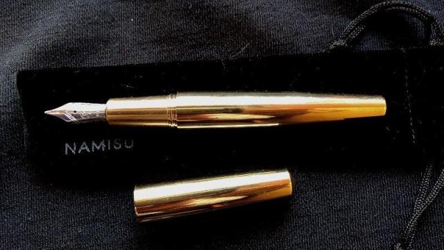 Namisu Nova - Brass Whilst I don’t mind using plastic/resin pens, my preference is for a well-balanced metal bodied pen. I like my tools to feel solid – give me a metal-bodied camera over a plastic one, give me a metal watch etc. I don’t mind weightier pens and find a badly balanced pen will be tiring to use even if lighter than a well-balanced pen, but I don’t write at great length anyway – generally it’s short letters, and at most a couple of hours of intermittent note taking. I had tried a Tactile-Turn Gist in Stainless Steel and liked it apart from its unposted length, and posted balance. I’d tried a Kaweco Liliput in brass and liked it as a trouser pocket pen for occasional notes but found it too slim for prolonged use and was tempted to try a Kaweco Sport (I probably still will) but whilst browsing for pens came across Namisu. The brass Nova was on offer, it came from Scotland so no horrible Customs fees, used Bock #6 nibs rather than #5 and seemed a very good price. ______________________________________________________________________ Appearance & Design (1-10) – Minimalistic but lets the brass shine It came in a simple but perfectly adequate black cardboard box embossed with Namisu in one corner. Inside the pen was nestled in a black velvet pouch resting on a typical flock insert. The packaging is certainly nice enough for giving this pen as a gift, without being so costly that you wonder how much of the pen’s cost was the box. No cartridges are supplied (I am surprised they don’t include a single cartridge) but the pen is fitted with the standard reliable Schmidt converter (I think this was an optional extra when the Nova was launched through Kickstarter, but comes as standard with pens purchased through their web site). The pen itself is minimalistic to the point that some may find bland, but that minimal design does emphasize the material the pen is made from – this pen shouts brass! Shape wise it’s a pretty standard chubby torpedo/cigar shape with a plain cap. It’s about as minimal as you can get. I’ve seen it described as a Nakaya Piccolo clone, and with the conical ends it does bear a family resemblance, although the Nova is longer and it’s taper is noticeably more exaggerated as well as having a more minimal section without the pronounced ring around the nib. It’s arguably closer to the Nakaya Naka-Ai in taper (but a little shorter). For me it’s more elegantly shaped than the Piccolo, but not as elegant as the Naka-Ai (although if I could afford a Naka-Ai I’d obviously want urushi…). I can’t get overly excited by the design – I think it’s got the edge over the Karas Kustoms Nakaya ‘homage’ (clipless Ink), but it’s basically just another cigar shaped pen with a step down to facilitate a minimal look when capped. If you want a similar design but not in metal look towards, Bexley, Edison or any number of companies. If you want a better designed metal torpedo look at the Namisu Orion. As with all clipless designs, with minimalism comes the possibility of a rolling pen. My desk is usually so cluttered there’s nowhere for it to roll, but for those weird tidy desk people you might want to consider a pen stand (or taking a Dremel to your office desk when your boss isn’t looking). I don’t carry pens in my shirt pocket and as it’s not going to easily fall out of a jacket the lack of clip doesn’t bother me – it might you. There is an inexpensive leather sleeve available too. The polished brass looks lovely when new (or freshly polished); it’s a gorgeous looking material, but bear in mind it is unlacquered so will tarnish. Anyone who’s owned a Kaweco brass pen will know how it will age if left – brass doesn’t develop as rich a patina as copper but will ‘matte’ with time and darken slightly. I’ve been wiping this down with a cloth after each use, but I doubt I’ll keep it up, and like the way my Kaweco Liliput has aged with use. You could probably remove the nib and apply lacquer if you really wanted to… 7/10 – lovely material and well executed, but not particularly original. … Construction & Quality (1-10) – Truly excellent I’ve had experience of other pens that started out as Kickstarter projects and they’ve tended to show odd machining marks and extremely minor manufacturing flaws – nothing that I felt critical of, just what you’d expect from a small machine shop. My brass Nova is a different proposition in that there’s not a mark on it (well there wasn’t when it arrived!). I don’t know whether Namisu do their machining in house or use a specialist machining company- they promote themselves as a Design Company and it might well be that they don’t do the manufacturing themselves. Either way this is beautifully machined with perfect threads, no grinding of metal or slight gaps where parts meet. The cap unscrews smoothly with around a single turn. Highly impressive. With my grip my thumb rests on the step down to the section, but the threads aren’t sharp and whilst I can feel the step I don’t find it uncomfortable. 10/10 – No faults found … Weight & Dimensions (1-10) – Long enough to comfortably use unposted. Heavy! I’ve realised that any pen that is designed to be used unposted needs to be at least 120mm and preferably longer if I’m going to write at any length. At 128mm uncapped this is fine for me – capped it’s around 140mm. It’s not a svelte pen (slightly under 16mm at its widest and around 12mm on the section) but personally I find very slim pens uncomfortable for prolonged use. Weight wise it’s a real beast… Capped it’s 89g, but 26g of that is the long cap – at 63g uncapped it is still a very heavy pen. Having said that it is very well balanced – slightly front weighted but not ridiculously so. It might be twice the weight of an uncapped Jinhao 159 but in use it’s so much better balanced you wouldn’t realise it. It’s not a pen I would want to w