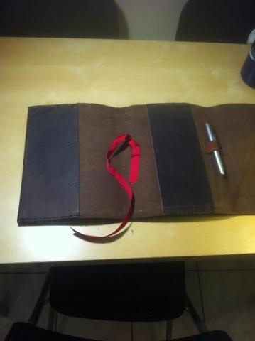 Welcome to Miz Black Crow's first formal Writing Stuff ReviewTM! Today we're going to look at Luscious Leather's Handmade Leather Journal Cover. Disclosures: I am not financially, familialy, or socially related to the designer; the item was a gift from a family member at my request. First off: this cover comes in many, many sizes, and the shop will custom make them to your size. That makes them incredibly versatile. My own version is designed for composition books. If you're not a fan of any one thing about this item, check the rest of her items; she lists 70 different journal covers on her Etsy site. As you can see from the advertising photo, the journal is supposed to be a nice dark brown, with a lighter brown band and D-ring closures. The item I actually received has a cover that's a little lighter, and a band that's almost the same color as the journal cover. The D-rings on my piece are also brass, not black. Since Aixa makes everything by hand, and to-order, pieces are varied, and thus unique. Your mileage can, and should, vary. First, I have to mention the smell. It smells amazing. That crazy lovely leather smell? It's got it, two months after I received it. I had doubts that the two D rings could hold the journal closed, but they have enough friction with the closure band that it's absolutely secure. The piece is about 3 notebook-widths wide: The edge on the left is closed, and holds the notebook securely; the piece on the right is open-ended, to accomodate slight variances in the size of the notebook's cover. If I'm writing in my lap rather than a desk, I can tuck the extra flap behind the last page of the notebook, and occasionally I use it as a bookmark when I close the book. Notebooks sit securely, and even when held upside-down it takes some purposeful shaking to cause it to fall out. That being said, when you fill one notebook and need to insert another, it's simple if not 1,000% smooth. Note: My photo-jitsu is not strong enough to color correct these to the accurate colors; the red ribbon is a little darker, for example. Photo intended for layout purposes. Silly iPhone. You'll see two of my own additions here. There are two spaces where the closure band--the strip of leather that gets fed through the D-rings--come through the backing. I've put both of them to use. The one on the left, which sits just to the right of the spine of the notebook, has been embellished with a strip of ribbon I tied on, that serves as a bookmark. The loop on the right has been pulled forward and is serving as a pen holder. (You can see my Parker Metropolitan tucked inside in the photo). The pen sits just past the end of the notebook, and doesn't inhibit closure, particularly with smaller pens. The leather surface IS prone to scuffing and scratching, so you have to be relatively careful what you put in your bag alongside it. I have yet to oil it, but I suspect a little TLC with the leather will go a tremendously long way to preserving the piece for what I suspect will be a long time to come. Good for: Carrying, cradling, sniffing, journaling, offices, carrying whatever type of journal you love. Bad for: Vegans. The Bottom Line: For a handmade, effective, gorgeous-smelling, durable, leather journal cover, look no further. At $70 (Comp book size / 11/2014), it's also relatively affordable for this type of cover. I look forward to many, many years of loving this item. Strongly recommend!- 7 replies