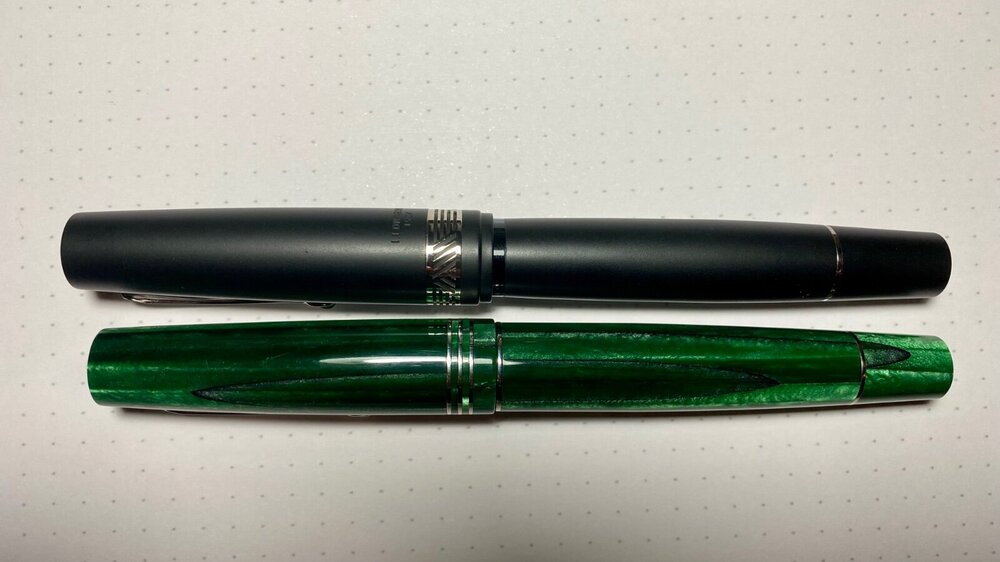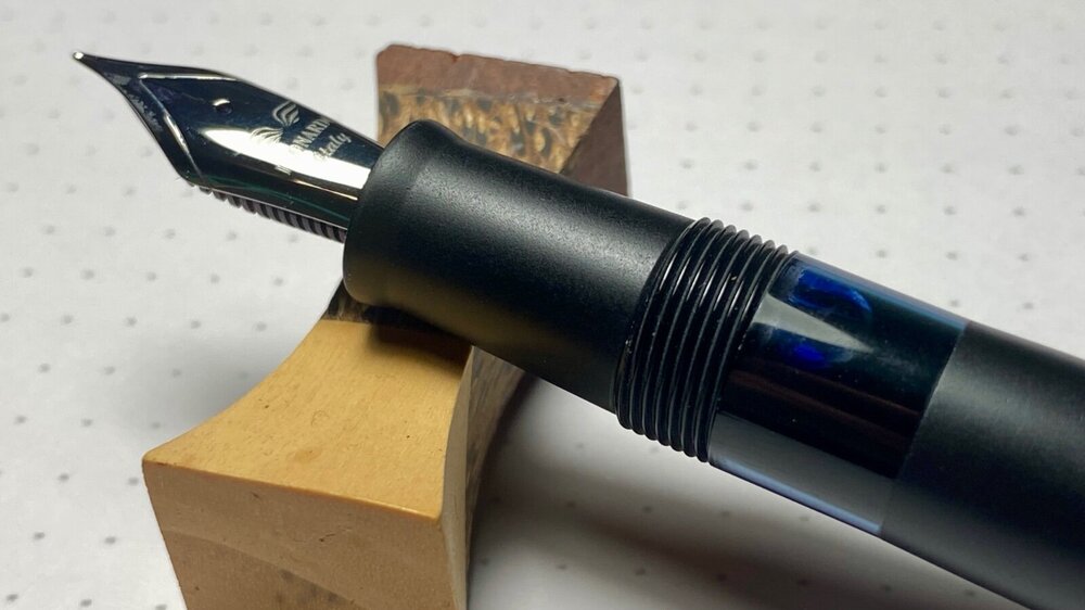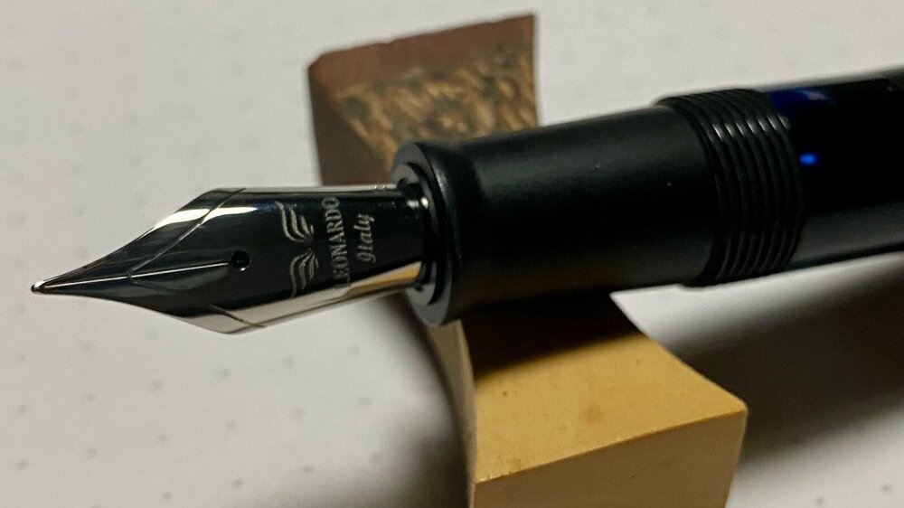 I'm not unfamiliar with this brand, as I already have a Momento Zero (green Alga), which I really like. Not only for its looks but is writes quite comfortable (after some tuning). As I dislike filling pens often, when I saw there was a piston filler that piqued my interest. The formfactor closely resembles the Momento Zero with some differences. So, the facts: Manufacturer: Leonardo Officina Italiana Model: Momento Magico - Anima Nera Material: Matte black resin Nib: Jowo #6 steel (EF) - unit Filling system: Piston filler (+/- 1,5ml) Capped: 145 mm Uncapped: 133 mm Posted: 169 mm Section: 10,8 - 11 mm ______________________________________________________________________ Appearance & Design – Lovely as always The appearance of the pen is typical for Leonardo. The matte black finish of the resin in combination with the silver trimmings gives it an understated and luxurious look. The cap band has a nice design, and you can se the underlaying material through the cut-outs. The barrel tapers a bit towards the ink window, and this gives it a bit of an unbalanced appearance to me. I was expecting that the large ink window would bother me, but actually if the pen is filled you hardly notice it, so that’s a plus. Construction & Quality – Good, as expected The construction and build quality of the pen is good, as I expect from a Leonardo and a higher priced pen. The Matte finish has a silky feel to it. The treads are unintrusive and the pen uncaps in just under 1 turn. The clip is excellent and functions great, I really came to love wheeled clips. Weight & Dimensions – Good size and lightweight As I don’t own a scale, I can’t weight the pen. But it feels a bit lighter to me that the Momento Zero. The length of the pen (uncapped) is perfect for my hands and slightly bigger than the Momento Zero. When posted it is slightly back weighted, but still very comfortable to write with. The ergonomics of the section fit’s me better than the Momento Zero although it could do with a bit more girt for my taste. As stated before, the slight tapering of the barrel towards the ink window gives it a bit of an unbalanced appearance to me. Nib & Performance – A misaligned Jowo The #6 Jowo nib the pen comes with is misaligned and out of the box (after cleaning) it has hard starts or simply refuses to write at all. This is quite a disappointment considering the price of the pen. After some tuning and aligning the tines, the pen performs great and has a nice juicy ink flow. After the tuning the extra fine nib writes more like a western fine (or a Japanese medium), I clearly must do some more work on the nib. Filling System & Maintenance - Classic piston filler The piston filling system works well and has a advertised capacity of 1,5 ml. It’s easy to fill it almost to the max. As all piston fillers cleaning can be a bit of a challenge and is time consuming. But these is a tool available to take the piston apart and that makes cleaning and maintenance easy. The Jowo nib unit can be removed easily. So, for those OCD cleaning freaks out there, you can get this pen as clean as it arrived in the box Cost & Value – No “bang for your buck” pen For a pen of € 199,- it’s very disappointing that you receive a pen that does not write out of the box and has misaligned tines. But that aside, it’s a nice pen to write with (after tuning) the lightweight pen is great for longer writing sessions especially with the larger ink capacity. Conclusion – Do it yourself nib on a lovely pen. All in all, the Leonardo Momeno Magico is a lovely pen if you are willing to do some work with the nib. For this price range of pens, I expect the nibs to perform perfect out of the box. The formfactor of the pen is great and the understated matte finish with silver trims makes it a great notetaker during meetings. The cap comes of just under 1 turn so that is ideal for quick note taking.