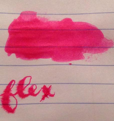 * originally posted on my Instagram. Ink Review: Noodler's Ink, Hellfire. Grade: 76.25%. Paper: Norcom Composition. I bought Noodler's Hellfire because I usually stick to black and white media when drawing/writing, and I thought I needed to mix things up a bit. First things first, despite its name, Hellfire is a pink colored ink. It doesn't lean toward red, orange, or even yellow. It is a bright transparent pink color that's meant to be used as a highlighter ink. Not many things make me miss taking notes in college, but as someone who color coded everything, it does make me wish I had Hellfire back then to break up the doldrums of Business Ethics. The first thing that pops into my mind when I look at Hellfire is cotton candy or watermelon. I don't really consider this an ink that I would use to write with every day. Not because of embarrassment, although I did get some looks at work, but because it's a little too hard for me to read on its own. Which, honestly, is not its main function. Like I said, Hellfire is a highlighter ink that does its job well. It pops off the page under normal lighting and will even fluoresce under a black light. Don't expect Blue Ghost levels of fluorescence. Think more of reflective safety vest at night. It drys very quickly and won't bleed through cheap paper. It's not a water fast ink, but you can see that it will put up a fight and resist being washed away. It will feather easily, but let's be honest, this ink should go in a felt tip pen and not in a flexible dip pen. Overall, I love this ink. And if you love choosing your own ink colors and feel like trying out a refillable highlighter pen, then you should definitely check out Noodler's Hellfire.