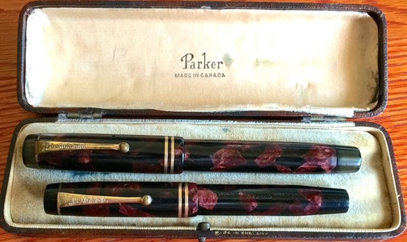 Hi all My Grandmother and I had this very heartfelt chat in which by the end of it she decided to give me her Parker Pen she has had for many years. I was very touched as I don't think she has been able to fill it with ink, but she always carries it around in her handbag, always :') Anyway I have it now and would be very keen to know what kind of pen this is so I can fill it up, go over to my Grandmothers and just slyly bring it out and start writing something haha. The inscriptions read " THE PARKER PEN CO LTD LONDON ENGLAND","TO FILL, PRESS RIBBED BAR AT LEAST 5 TIMES" If anyone on this website could lend me their keen eye I would be ever so grateful