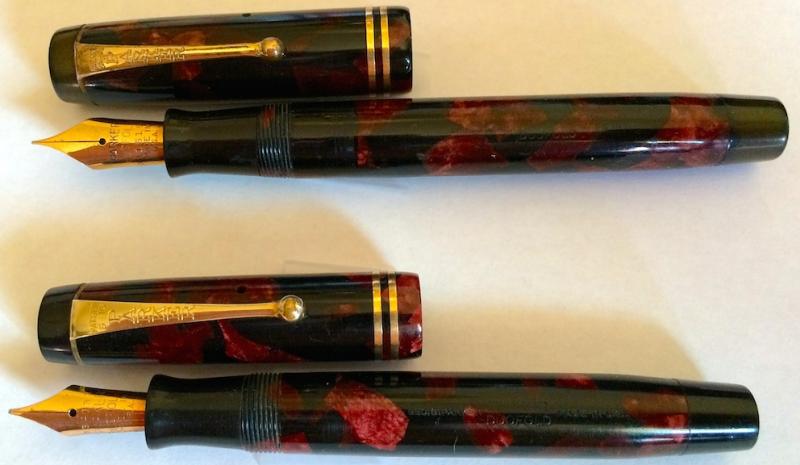 I am trying to determine the value of my 1933 Duofold Sr. & Jr. burgundy/black set. I know condition is imperative to determining value, and without seeing them in person its very hard to guess. But it is possible to come up with a range for the set. Both pens are in Excellent - Fine condition, with minimal wear on the bodies, the clips show wear, but both bodies have a few light scratches, which could be buffed out, the nibs are in excellent condition with the following numbers; Sr. 0015152 and the Jr. 03403. Neither have had ink usage. See attached images. Any assistance would be greatly appreciated. Thanks in Advance