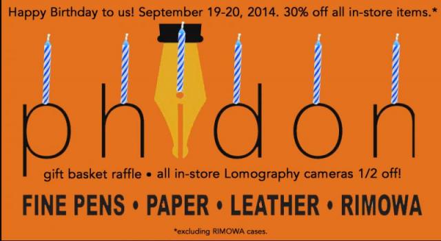 September 19-20 is the 6th anniversary celebration for Phidon Pens Limited in Cambridge, Ontario, Canada. We are offering 30% off all in-store merchandise (excluding RIMOWA cases) for these two days only. We are also bringing in a few higher-end limited edition pens for those two days only which will be included in the sale. There will be a draw (ballot with purchase) for a gift basket of merchandise from the store. Thank-you to the pen community for supporting us for six great years! -