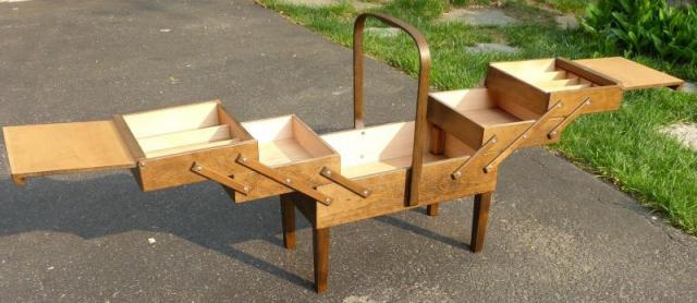 My mom had one of these and when I was thinking about better ways to store my pens, it suddenly hit me, "So what if it's meant for sewing?" I like this idea for a few reasons, it closes to a fairly compact size, the bottom compartment is deep enough for ink bottles or pen boxes, the top tray(s) would be great for wax & seals, etc., and I'm attracted to the ability to see everything in the wide open position. My idea is to line it with green felt and make felted slots in the trays to separate the pens. The drawbacks that stand out to me are that it has an almost 4-ft. wingspan so it needs its own space, and it might be too clumsy to deal with if I just want to get a certain pen or whatnot. So, any opinions or items for consideration would be appreciated.