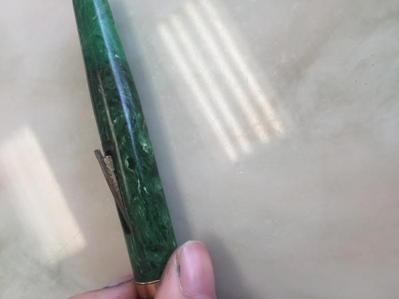 I bought this pen on eBay recently and thought I'd stumbled on a wet noodle pen (seller had this in all caps in the title) for a steal at ~$62. Problem is, this pen is almost certainly not a wet noodle, as defined by going off of what I know of them, based on me trying to flex the tines (which are about as flexible as an Ahab (so not very flexible at all), and much sharper, for those wondering). There's a fair amount of scratching, damage, and bite marks to it, which brings me to my next point. The section and barrel won't come apart, and the lever filler clip stops at a certain point. As someone who is totally inexperienced with restoration, could I restore it on my own or would it be better to send it off to an expert? I could deal with the latter, but as a student, if it costs too much, I don't know if I can. https://www.fountainpennetwork.com/forum/uploads/imgs/fpn_1555954263__img_e4474.jpg -