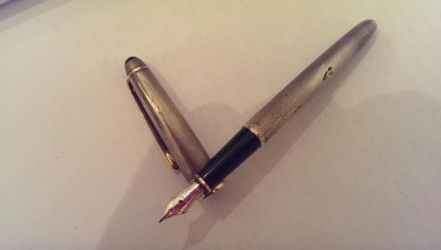 Dear members, I come back with a new task that was given to me lately. I had previously used this forum when I serviced an old Paker 51 by cleaning it completely, changing the ink sac and using new shellac to seal it. It turned out great and It became my everyday pen. Today I received from my Grand Pa, a beautiful Silver Montblanc Meisterstuck 144 that needs quite a bit of servicing. I would like to get your advice on the following points (I provided a few pictures so that you get an idea of the pen's current state): - I wanted to polish the silver, should I use a silver polishing cloth like this one (I read that advice on this forum) : http://www.argos.co.uk/static/Product/partNumber/2128708.htm ? Or will it damage the pen? what about the gold? - I would like to take off the numerous ink spots on the pen, how should I do this without damaging it? - I want to clean the Nib, feed and section (get rid of the dry ink), should I just flush it with water? If you have any other advice on what i should do before using it, please let me know Thank you very much!