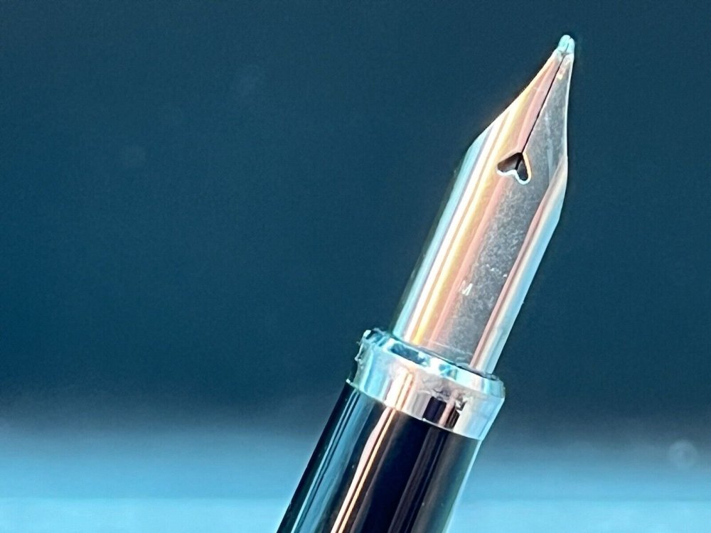 Sheaffer Triumph 444 Brushed Chrome CT SS nib, showing squeeze converter.jpeg