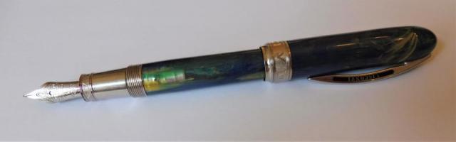 Hello! I recently inherited a collection of vintage fountain pens, ballpoint pens, and mechanical pencils from my father. I am looking to sell several of the fountain pens and am having trouble identifying a specific Visconti fountain pen that was part of the collection. I have attached images for reference. I believe it's a Visconti Ragtime I but I cannot seem to find pictures of that model in blue. I have only seen pictures of it in Cinnabar. The lighting in these pictures makes it look much more green than it actually is. It appears to be the same color as the blue Visconti Federico II Limited Edition (Ragtime) in this listing. Any information would be much appreciated!- 4 replies