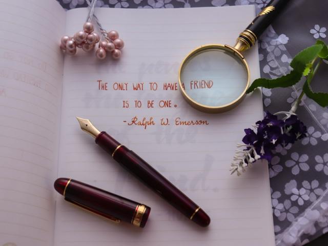 Hello, I always start my day with surfing my instagram feed to see new posts of fountain pens and handwriting. One type of posts which catches my eyes the most is inspirational quotes written by fountain pens. It always warm up my morning with fresh spirit. Let's share some pictures of your pens with inspirational quotes. I start with one of my favorite quote "The only way to make a friend is to be one" - Ralph W. Emerson