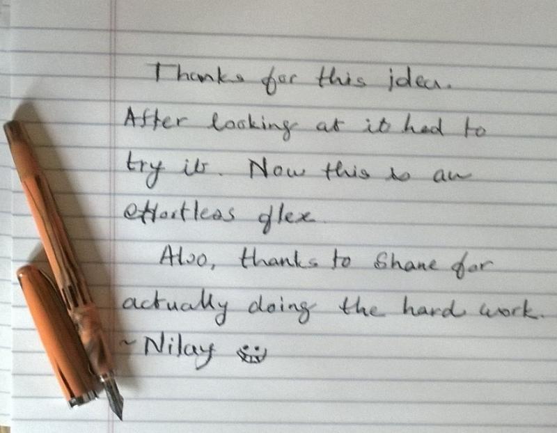 Sorry for the atrocious handwriting, that was my first attempt at using a flex pen for my normal handwriting :P