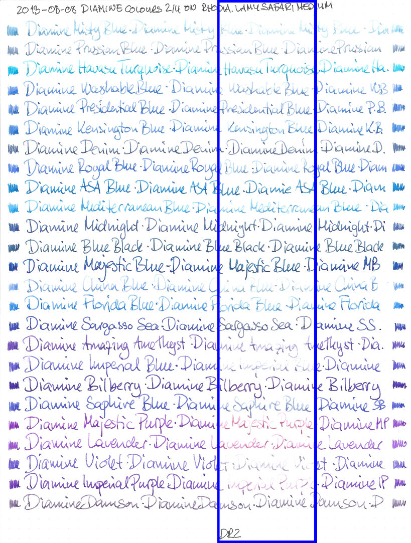 All Diamine Inks Mini Fade Test