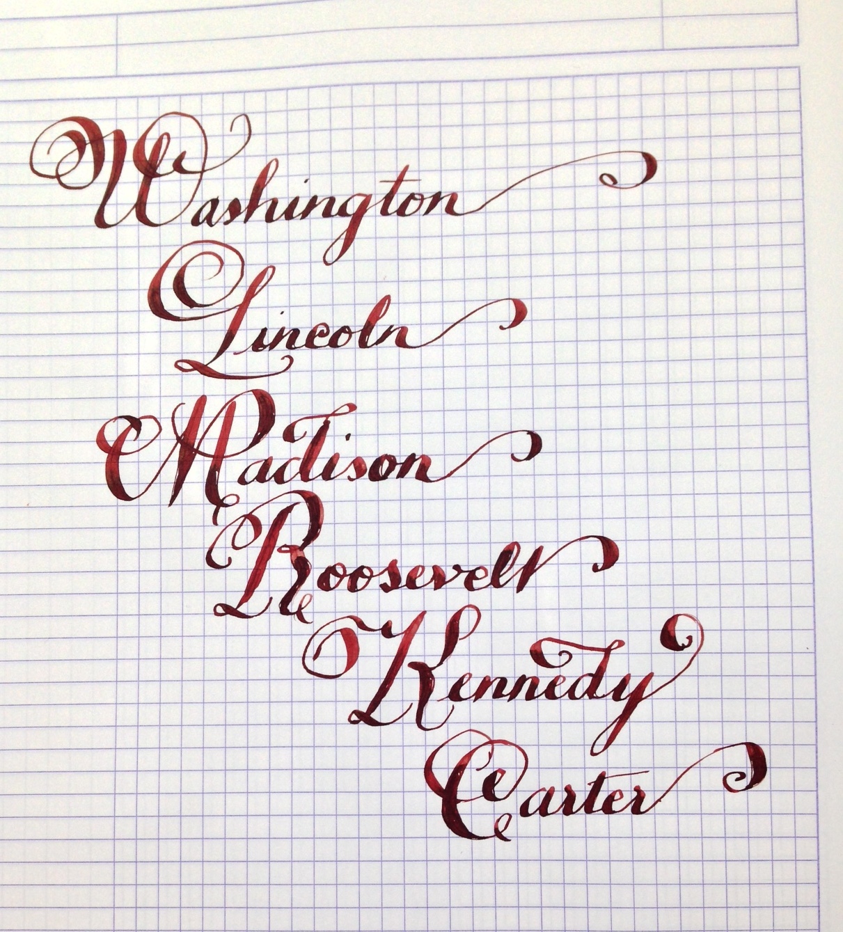 But today, I am using Diamine Oxblood (also Halloween-y!) in a Duocraft pen with a 3-tined music nib. Very fun!