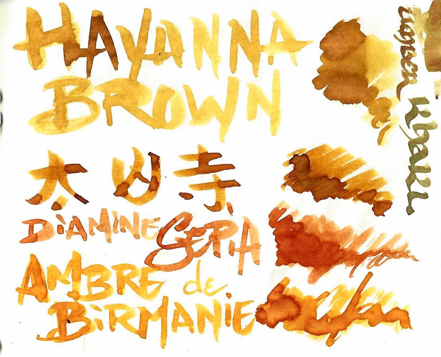 I should have mentioned above that the Havanna Brown is from De Atramentis, who seem to have a really good range of browns and greys, not the more well known Waterman. If I could find the thread where someone was asking for a golden brown, I would definitely put this forward (although I think they found the Diamine Gibson guitar sunburst inks to fill the niche?).