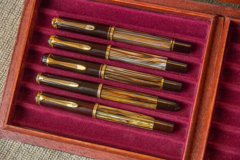 Here is a picture of five Brown Tortoises in the 400 size. Top to bottom they are the 2016 SE M400, pre-97 M400, M250 Levenger Brown Tortoise, late '50's 400NN, and a first year 1950 400. The 400 is my birth year pen, and the new one is this year's B-day pen. And like I said before, picking a favorite is like picking a favorite kid.