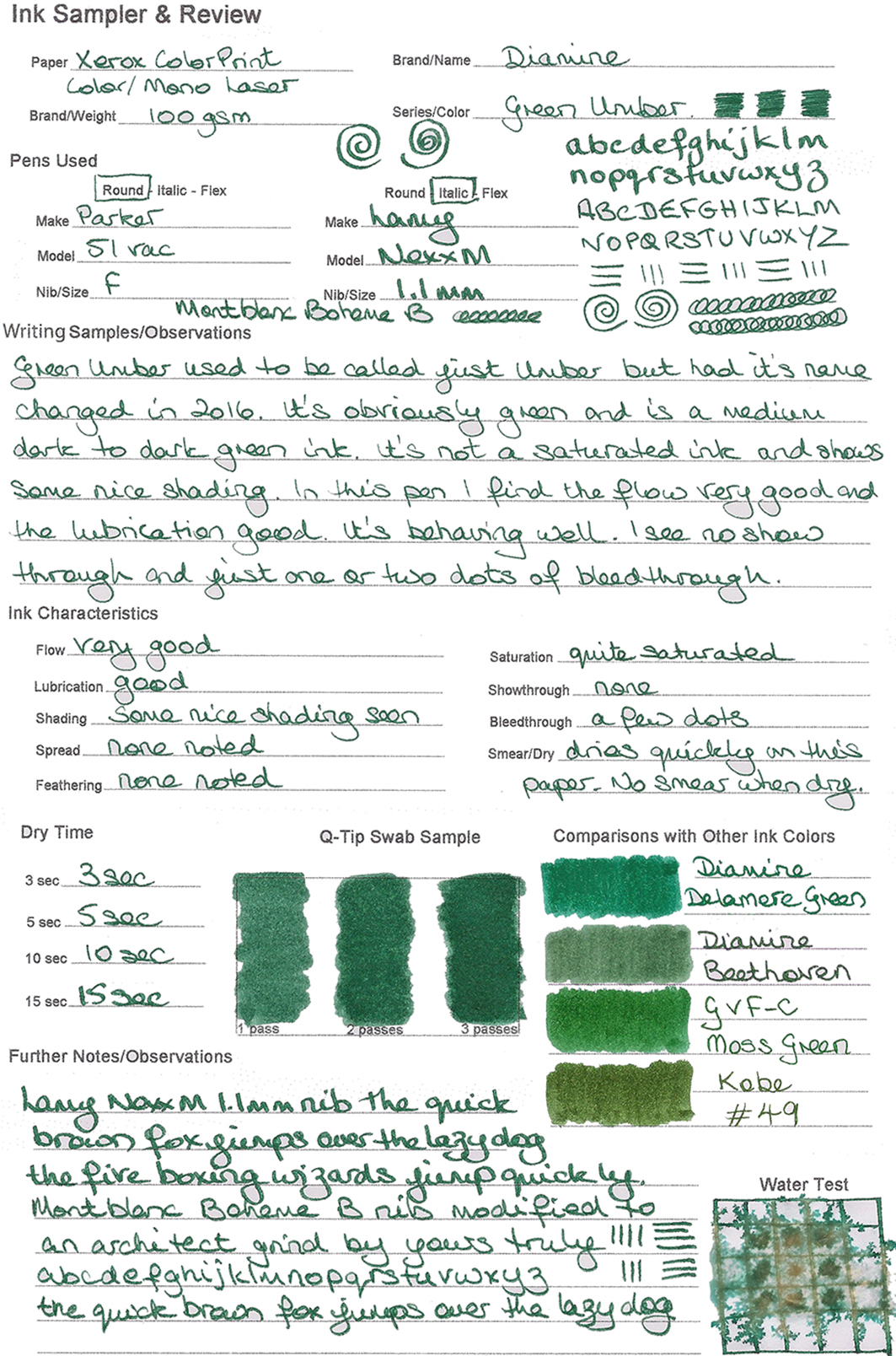 Ink Review: Diamine Green Umber
