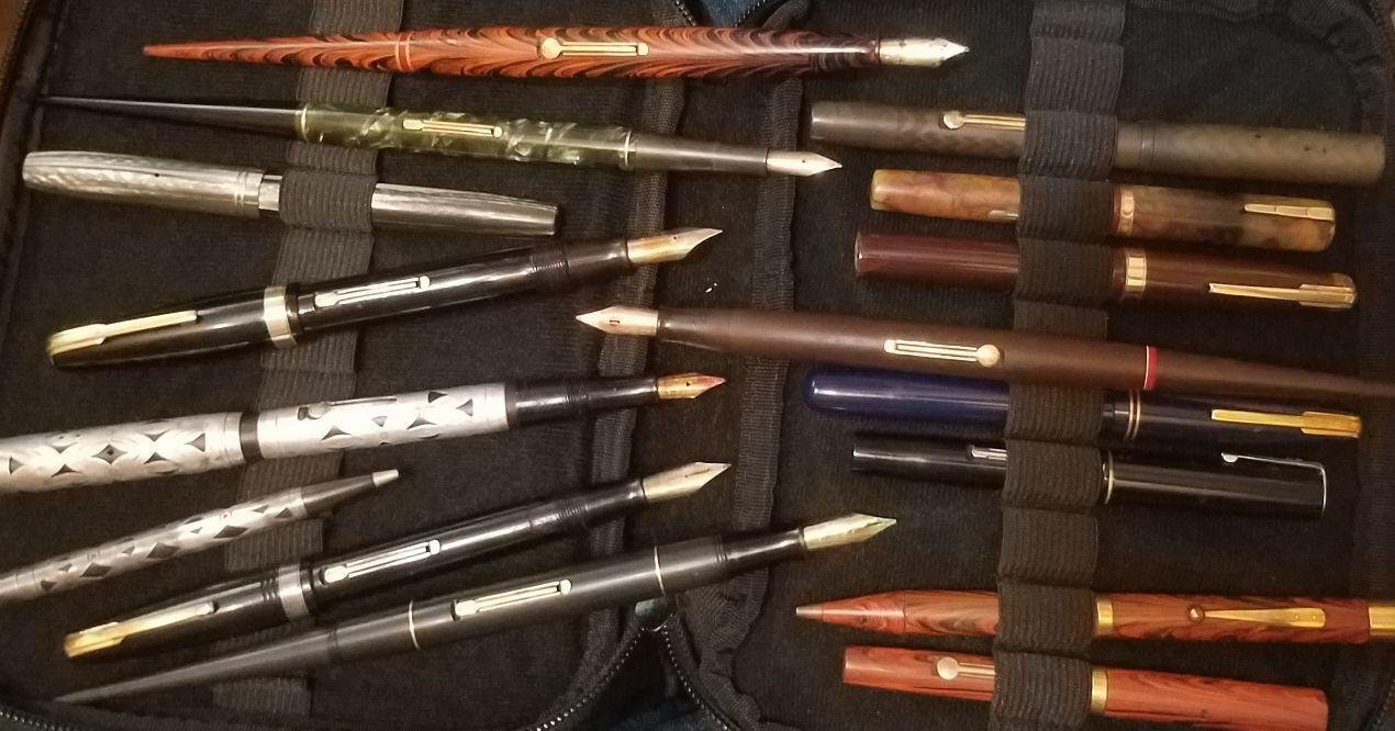 A few gems and some user grades.  The ripple has a Blue, the other "7" is a Red, Hundred year OS on bottom, and carry pens include an OS Emblem, Hundred year frankenpen, and the capped pens are a 54, a W5, and if any specific questions are had I'd be happy to share more!  A couple are scratchy but none have firm nibs.